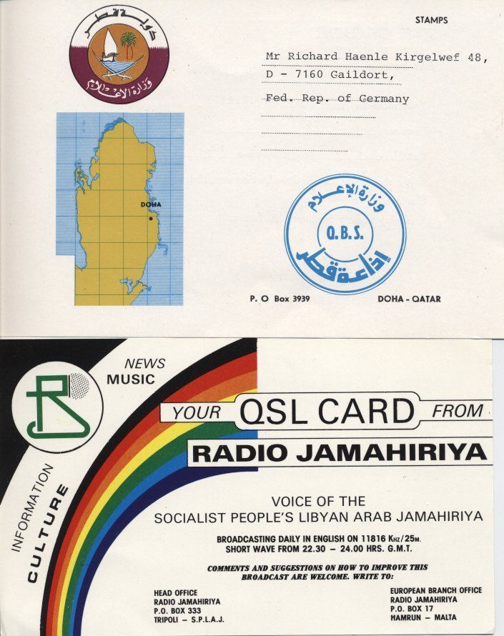 befanden sich auf meiner Jagdliste. Wer Hörberichte mit einigen Details zum Programm einsandte, bekam als Bestätigung eine QSL-Karte, manchmal in der Anlage sogar ein kleines Geschenk oder einen Stations-Wimpel. Besonders gute Kontakte pflegte ich dank meiner damaligen finnischen Freundin - heutzutage immer noch meine XYL ! - zu YLEISRADIO - Radio Finland. Von dort kamen u.a. schöne Bildbände und einmal sogar zwei Eintrittskarten für die Savonlinna Opernfestspiele, die jeden Sommer in Ostfinnland aufgeführt werden.