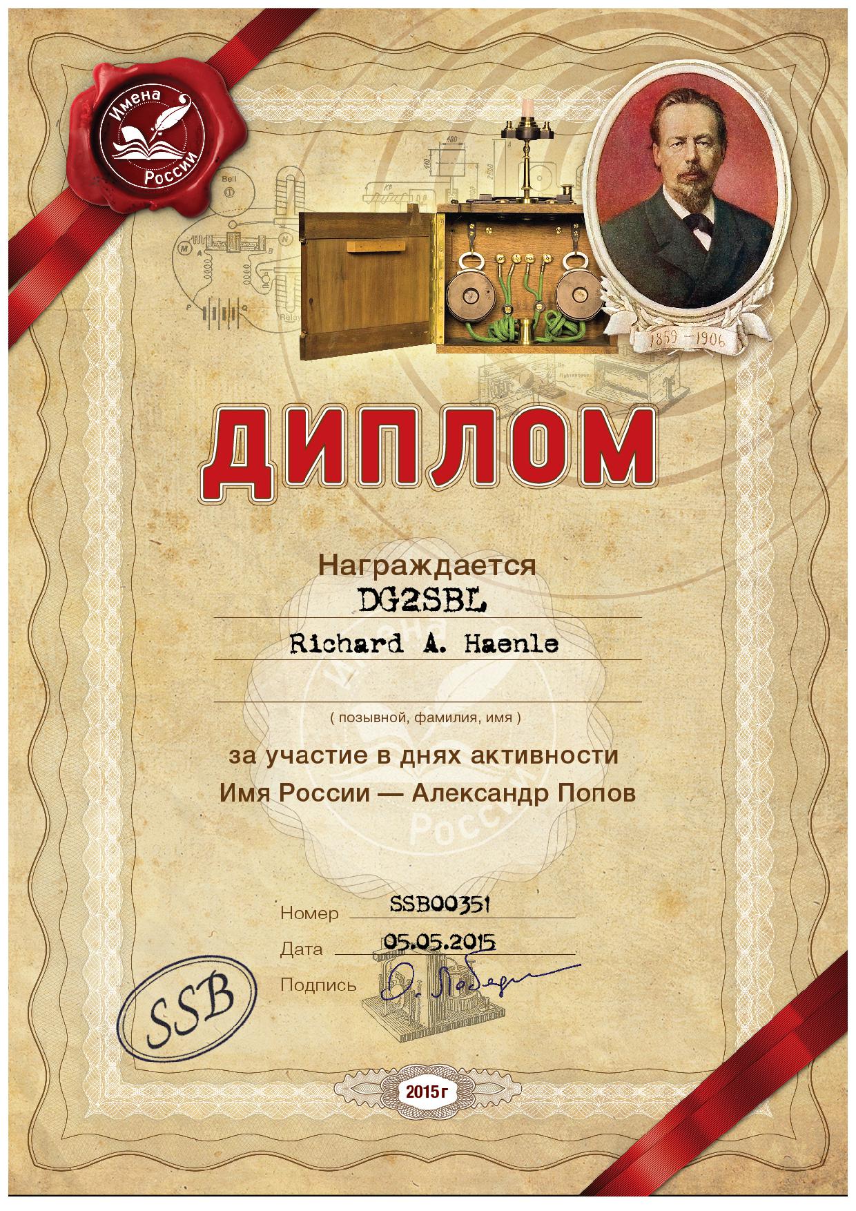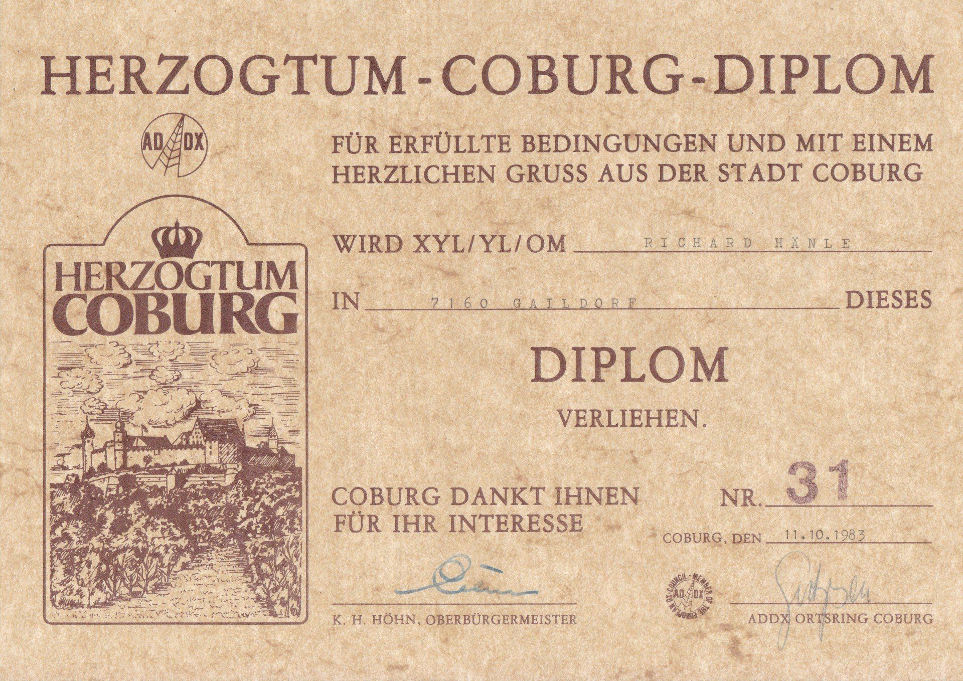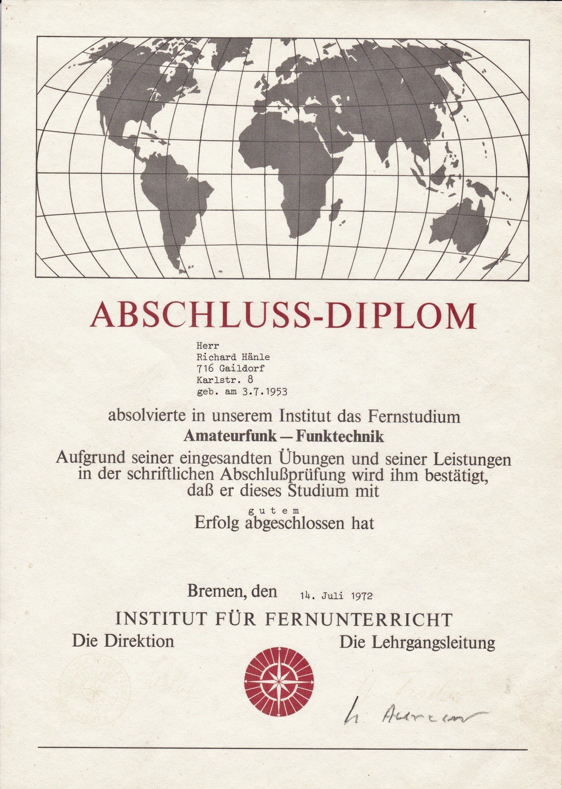 Diplom "60 Jahre Amateurfunk in Deutschland"
