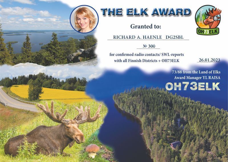 The Elk Award for QSOs with all 10 Finnish districts + OH73ELK