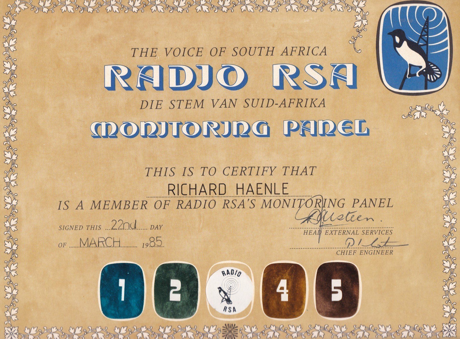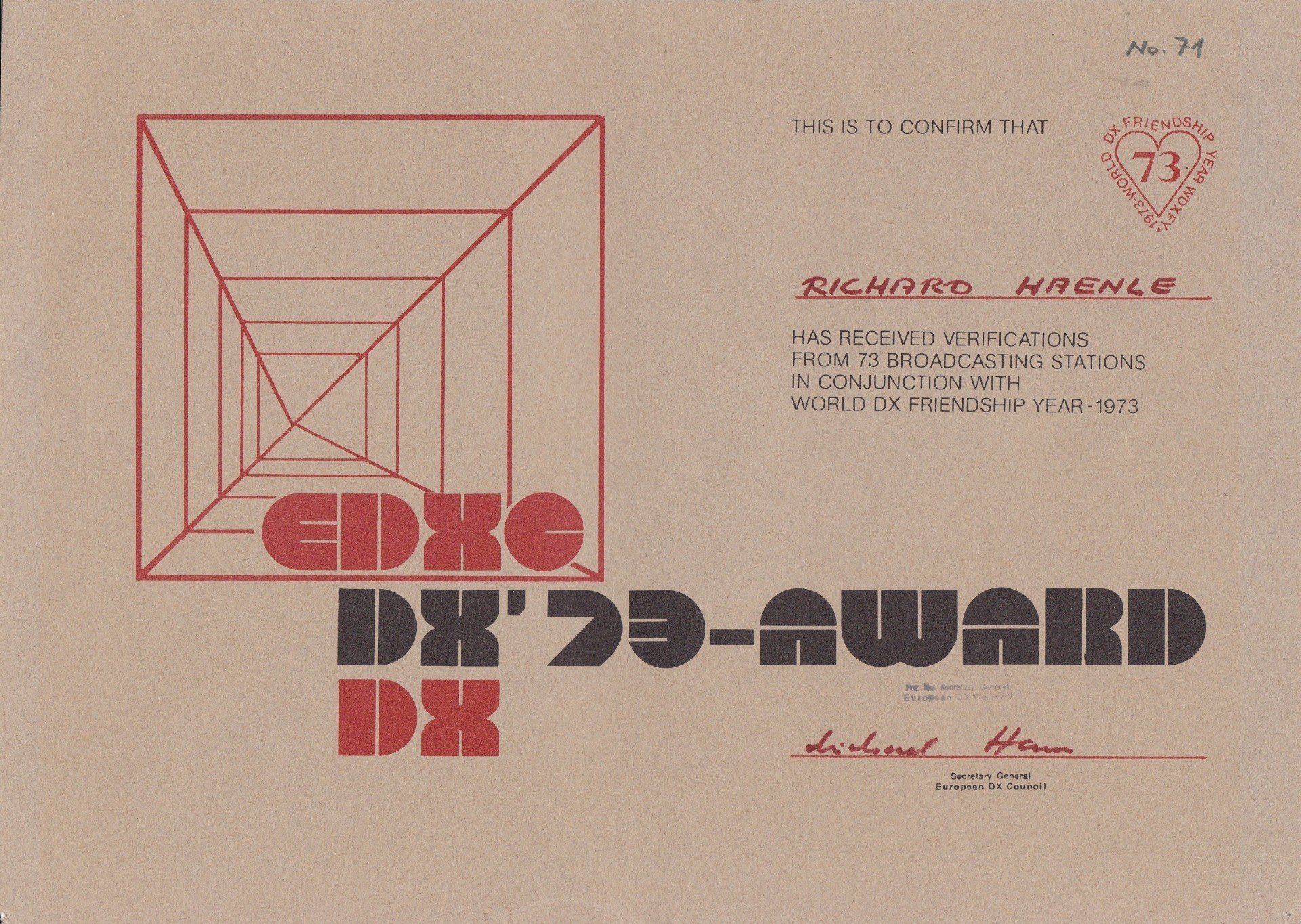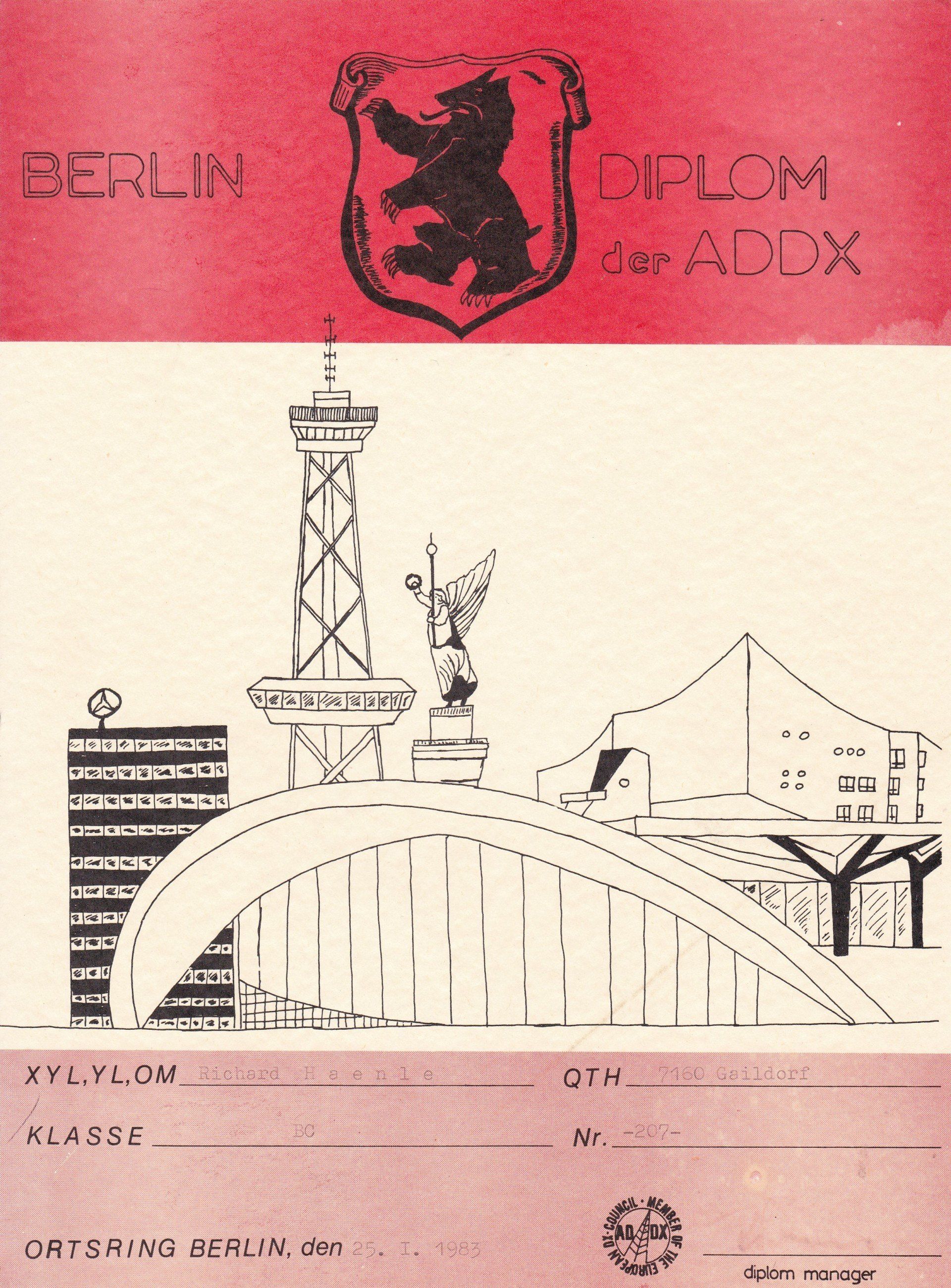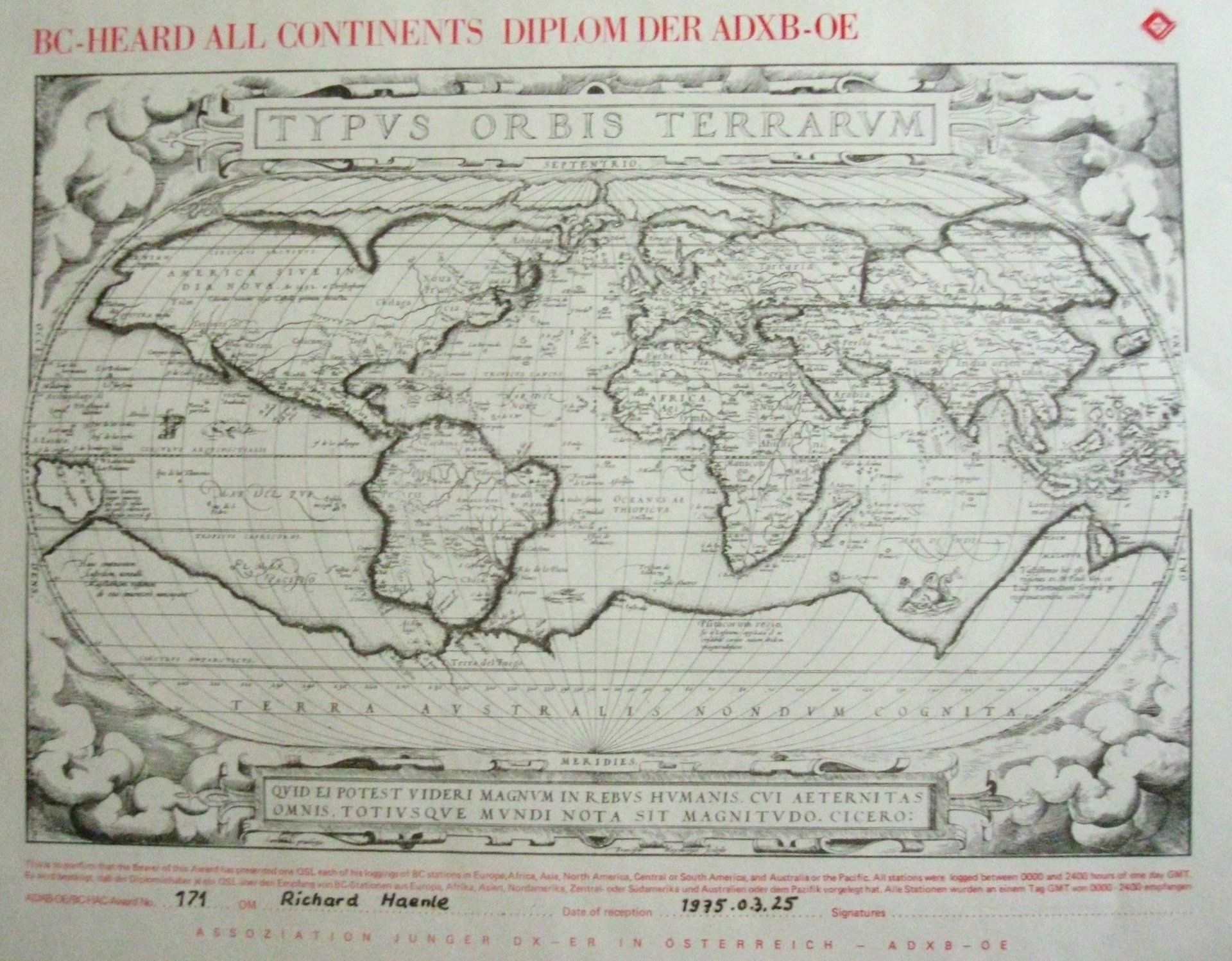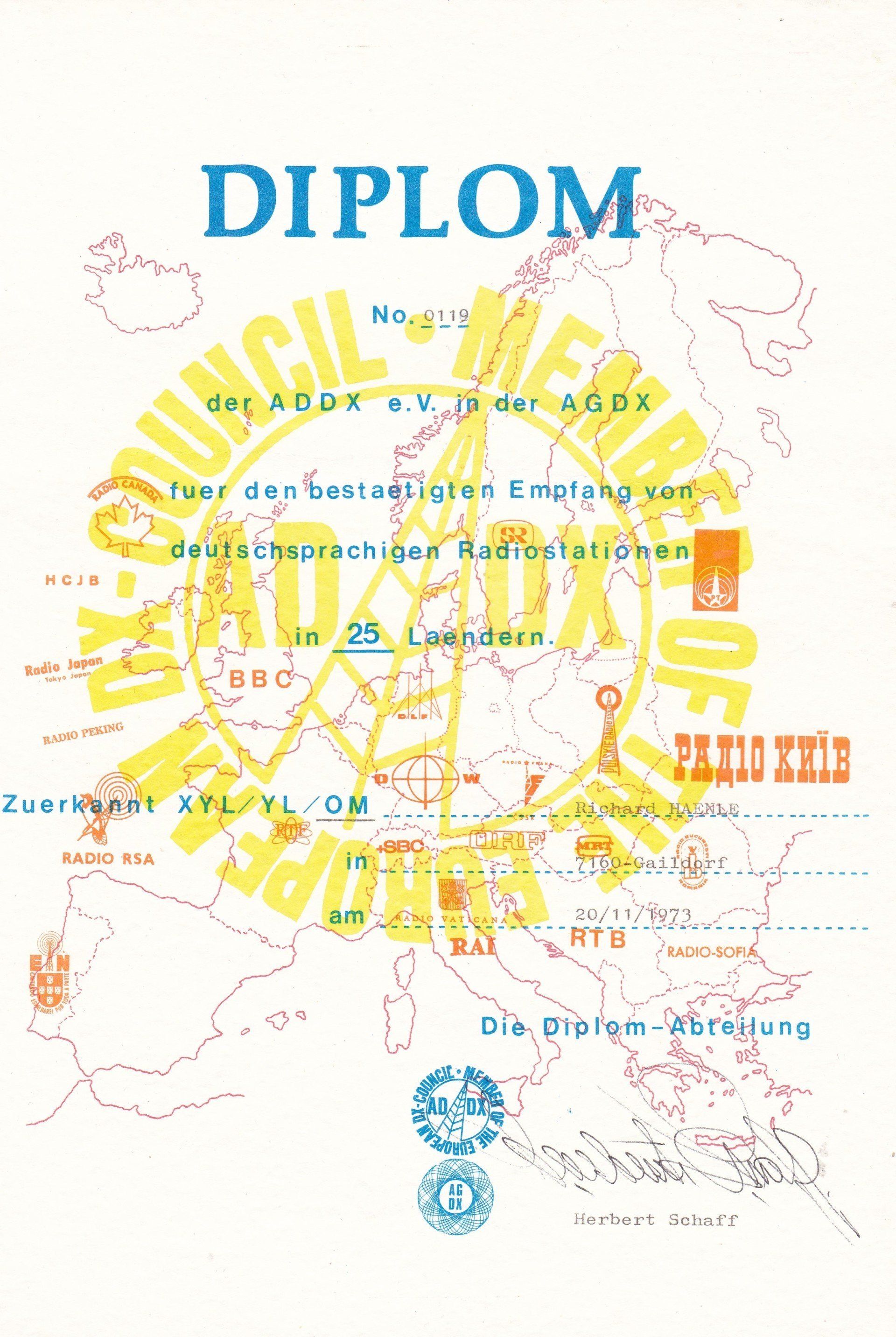 ADXB-OE-Diplom für bestätigte Hörberichte an Rundfunkstationen aller Kontinente