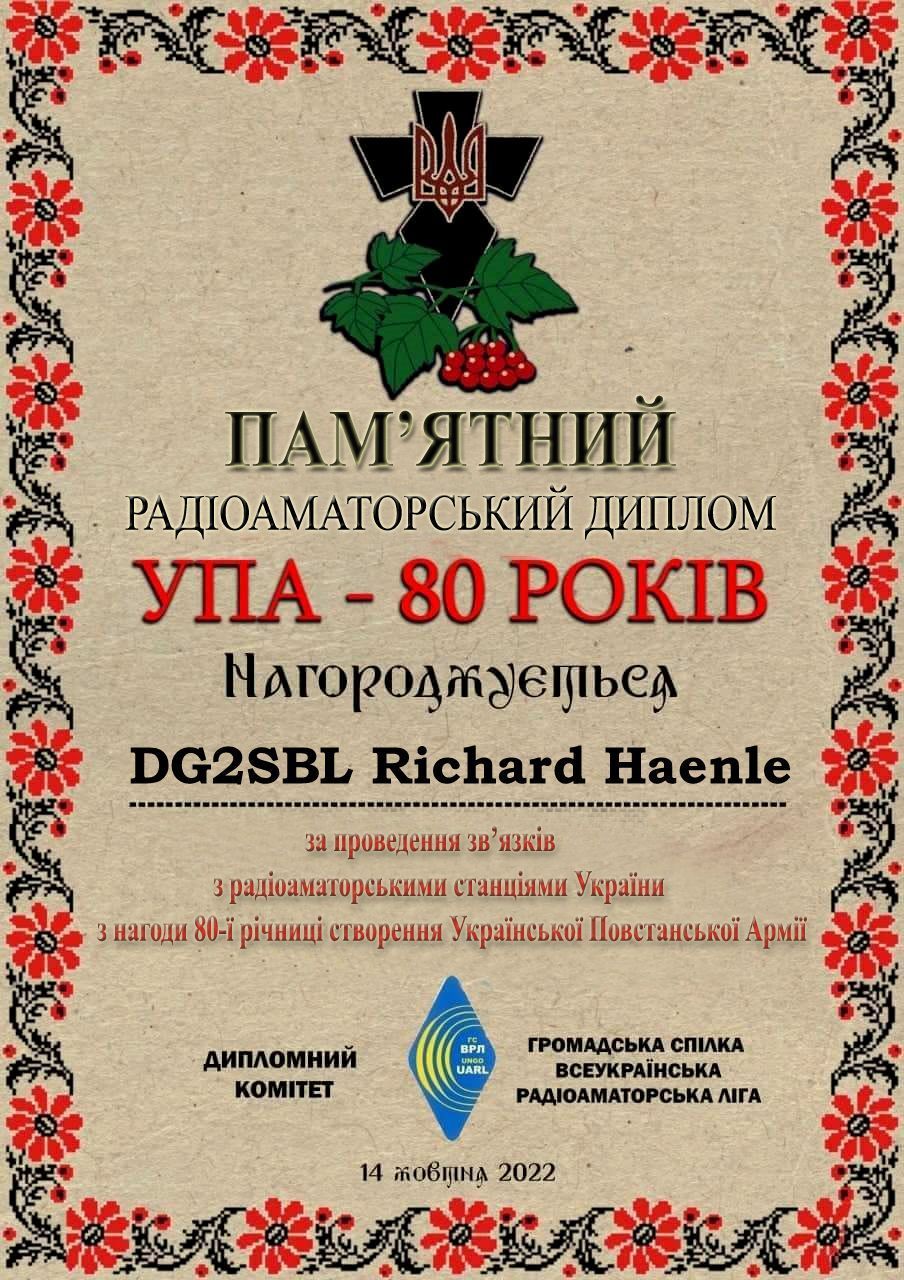 DG2SBL has 106 points (557-611st place), which gives Golden Award and optional Wooden Plaque.