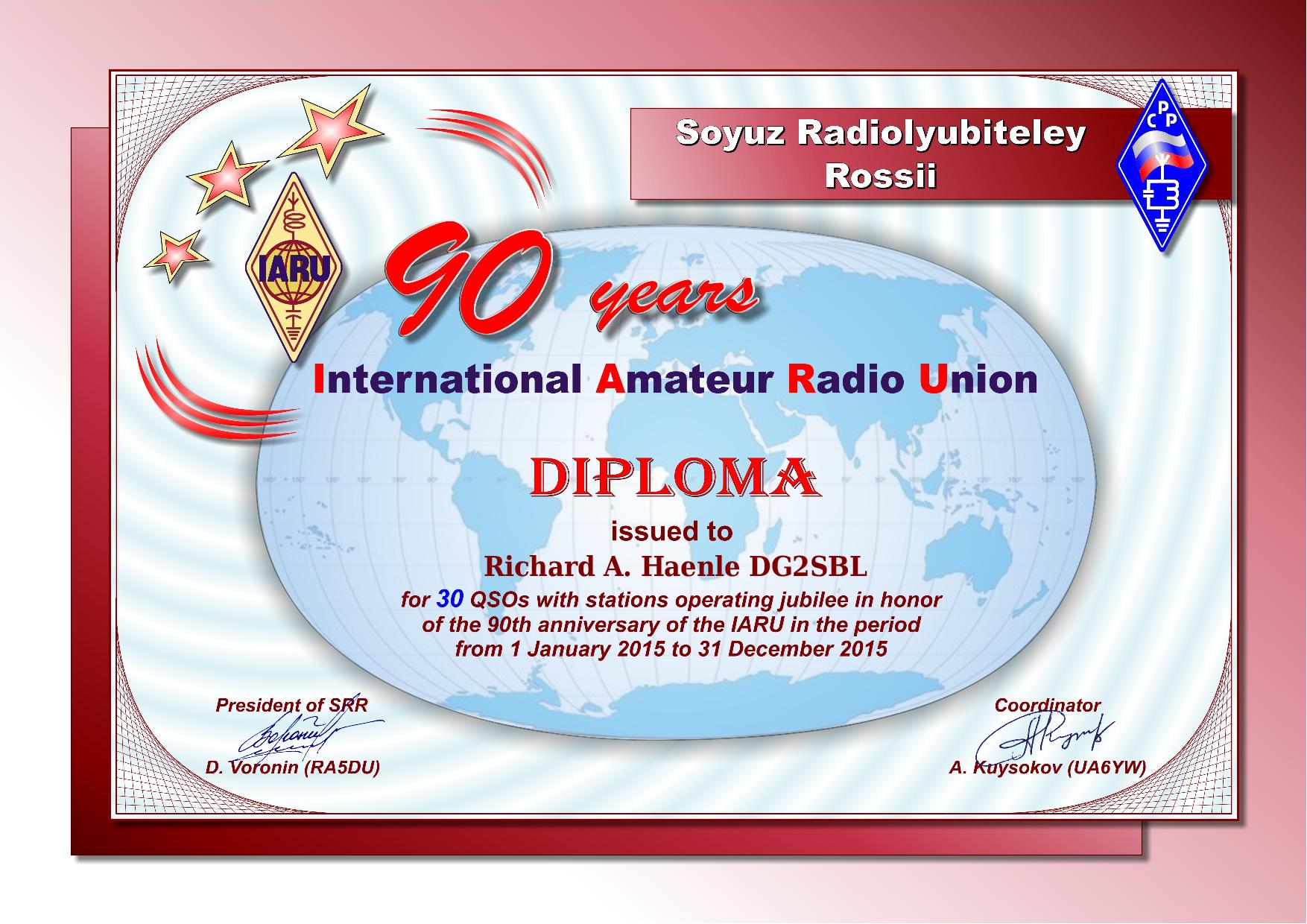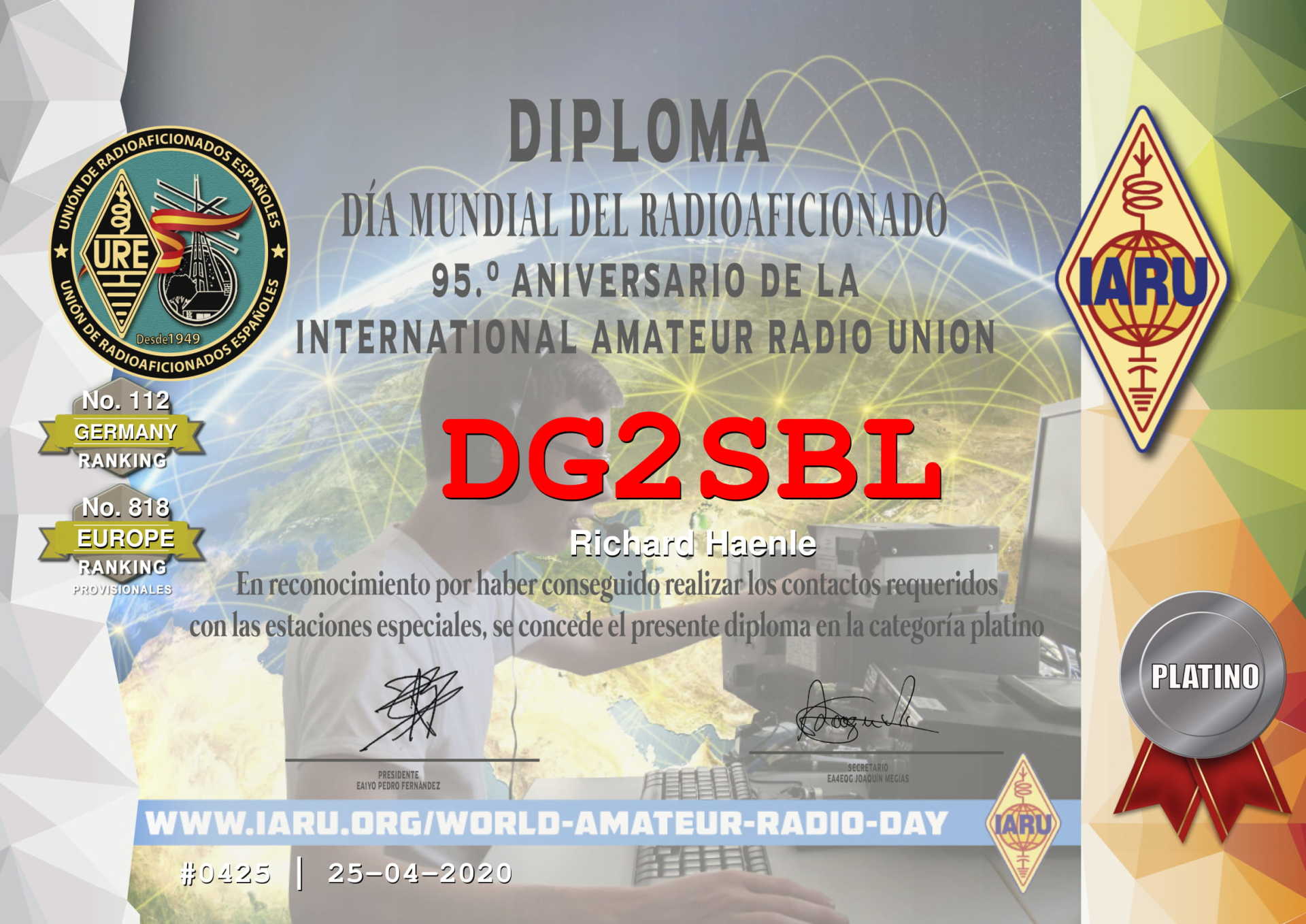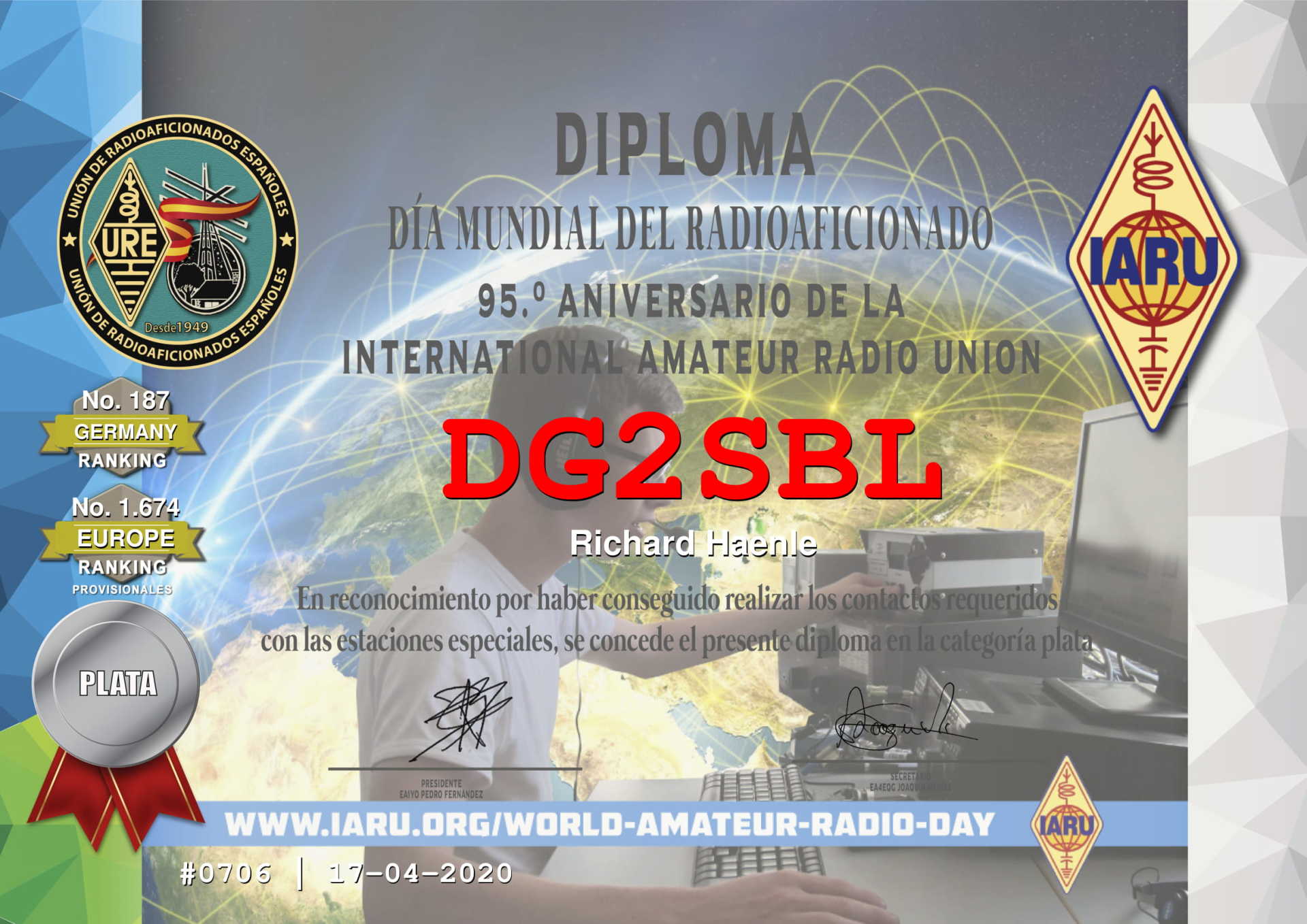 DIPLOMA IARU 95th ANNIVERSARY - WORLD AMATEUR RADIO DAY 18.04.2020