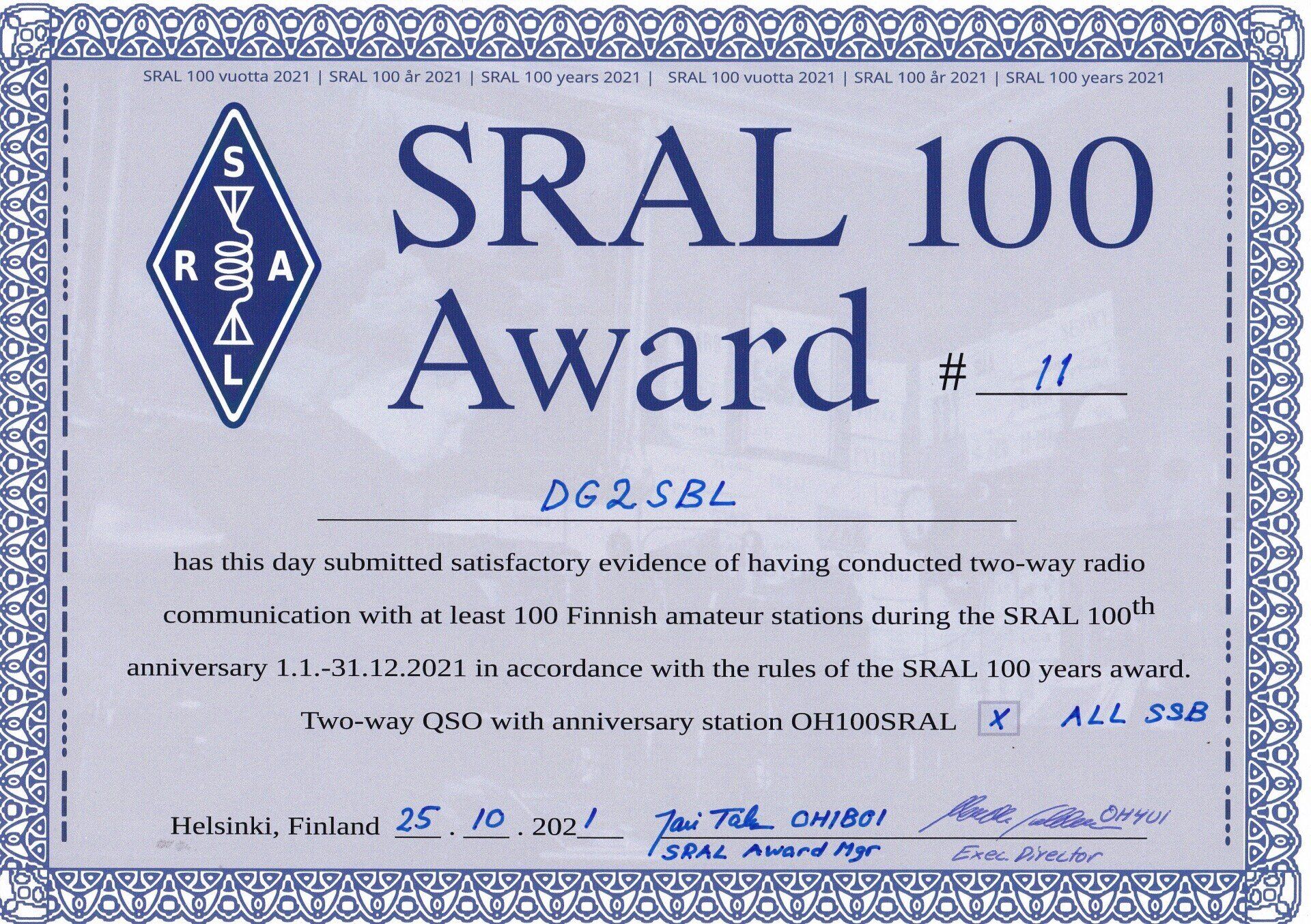 SRAL 100 AWARD -100 Jahre Finnischer Radio Amateur Club (2021)
