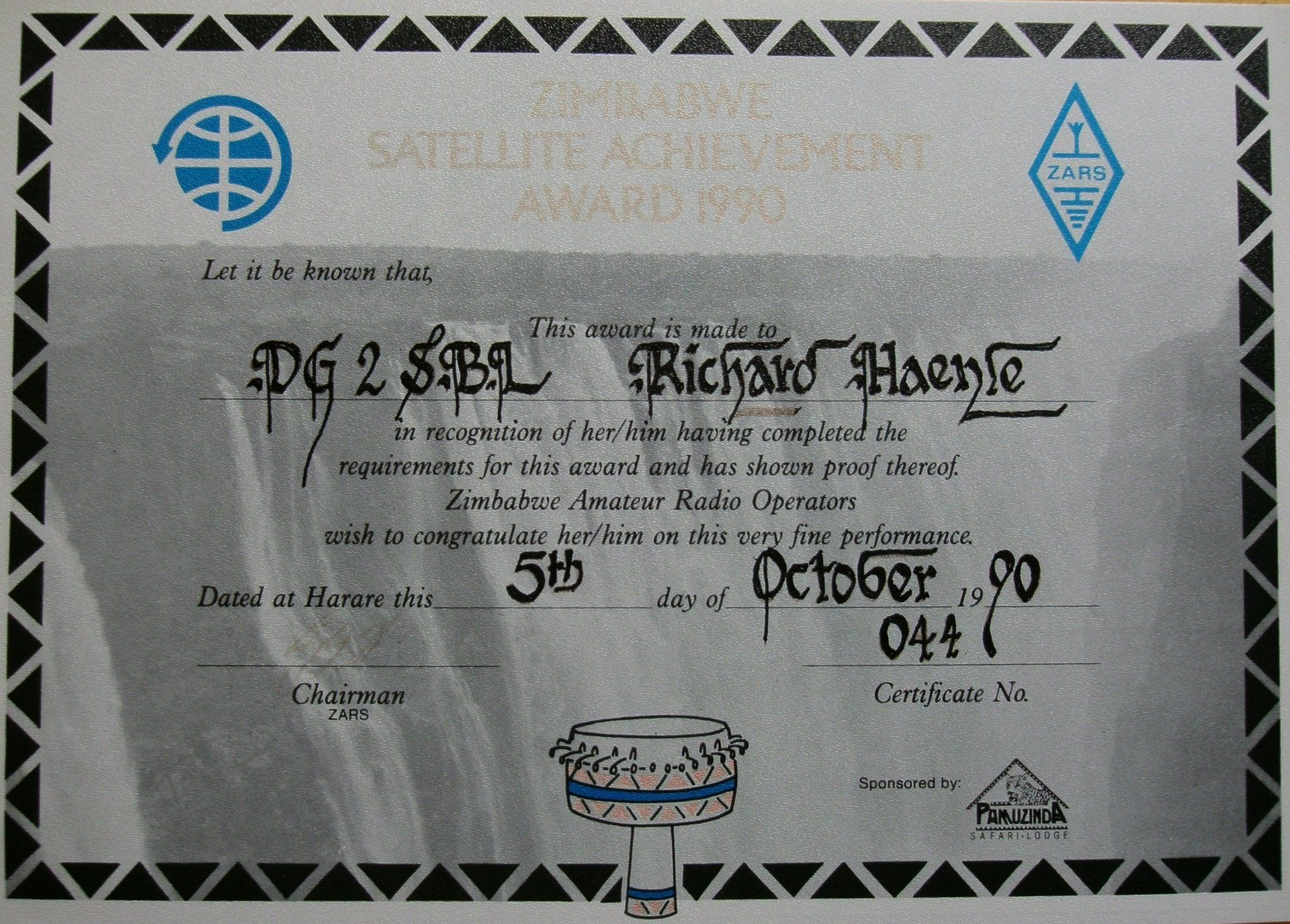 ZIMBABWE SATELLITE ACHIEVEMENT AWARD 1990