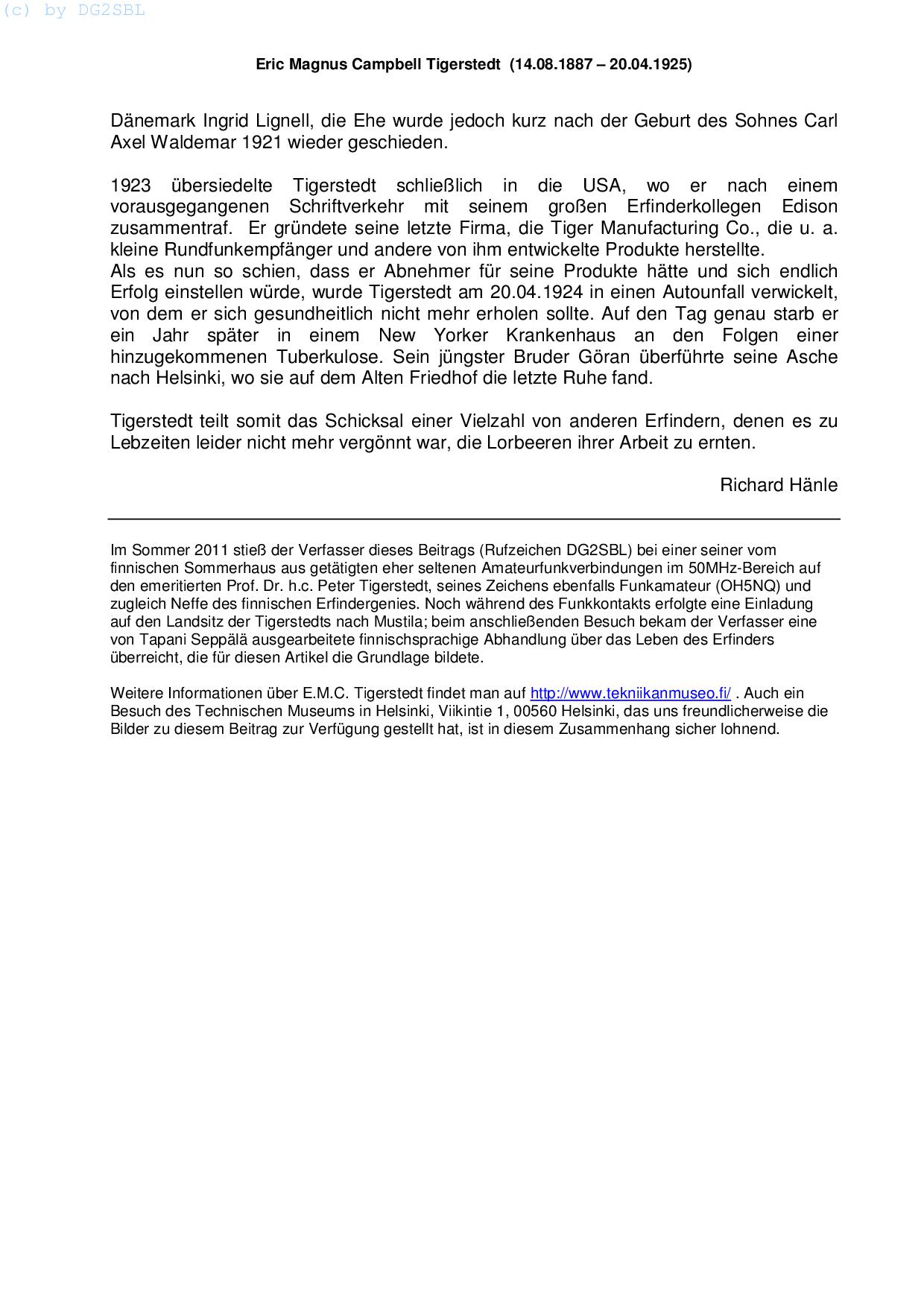 In Deutschland gab es noch kein “Radio”. Und die Reichstelegrafenverwaltung blieb stur. Sie hatte die Monopolrechte. Der Schweizer W.de Haas (Hanns Günther) wurde Herausgeber einer deutschen Zeitschrift “Radiokosmos" Frankh, Stuttgart und kämpfte für die Einführung eines deutschen Rundfunks. Von seinen Mitarbeitern seien hier genannt: Manfred v. Ardenne, H. Kröncke, E. Nestel, Alexander Stüler, Graf Georg v. Arco u. a.